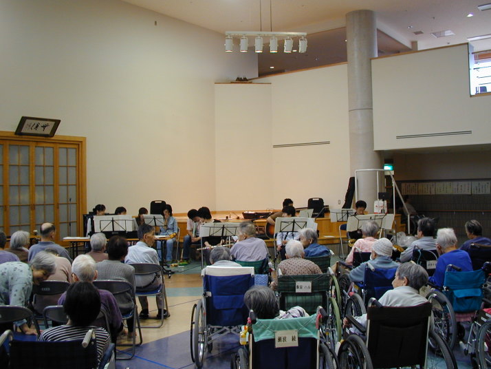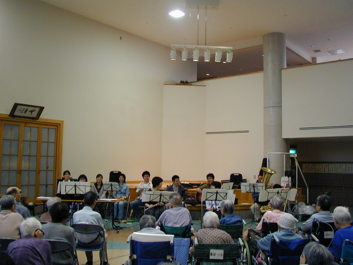(そういち) 雨降りの天気でしたが、メンバー全員の参加という初めての快挙! 音響機器や小楽器なども段々に充実し、演奏に厚みが増しましたネ。 MCのとちりや、失礼なメンバー紹介も致しましたがお許し下さい。 反省会、のりえさんが欠席で残念でしたがとっても楽しいひとときでした。 これからも今回の様に楽しい雰囲気の中で演奏会が出来たら良いと思います。 初デビューのよしえさん、ともこさん、りかさんにも感謝、感謝です。有り難うございました。