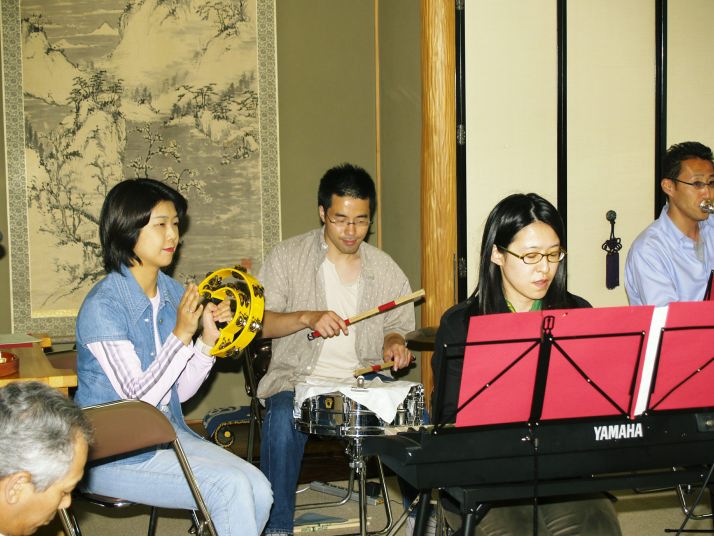 和室での演奏でした。キーボードは3人が代わる代わる演奏しました。