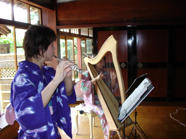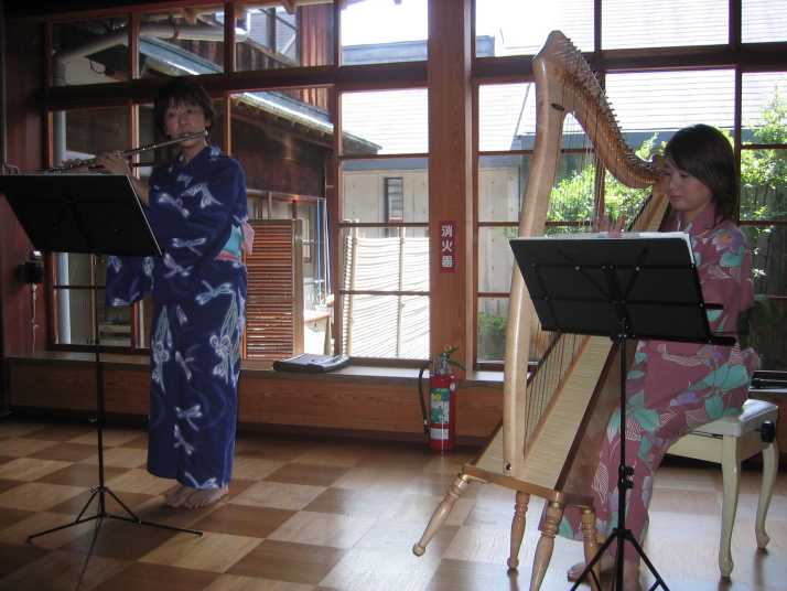 フルートののりこさんが浴衣を着てハープ奏者の宮村祐子さんと演奏しました。いつもとはちょっと違った雰囲気です。「たなばたさま」と「ふるさと」は会場のみなさんがいっしょに歌ってくださいました。 編成 フルート、ハープ(倶楽部員ではありません) 演奏曲 たなばたさま、星に願いを、ふるさと