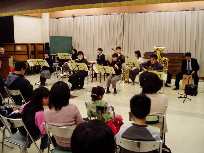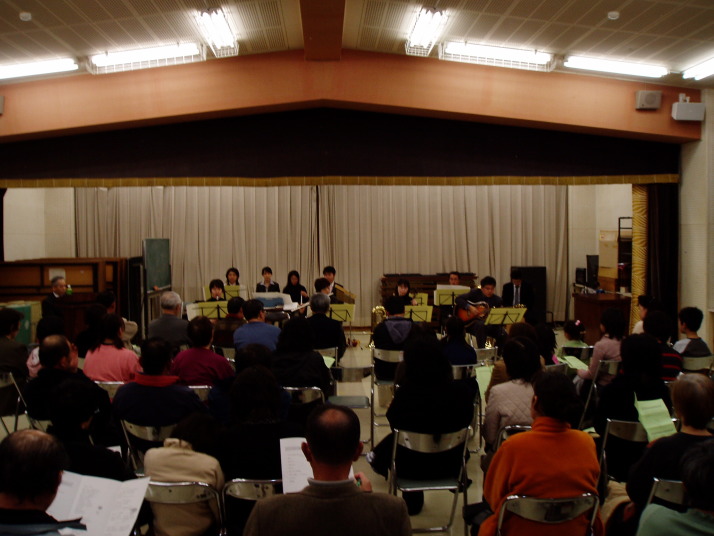 笠間地区では初めてでしたが、たくさんの方に聴いていただけてうれしかったです。演奏曲目、時間ともにちょうど良かったと思います。緊張すると思ってなかったのですが、最初の3曲ほどは緊張してしまいました。なかなか本番はうまくいかないものだなと改めて思いました。私は今回の楽器紹介ではハッピーバースデーも良かったけど、 たけしさんの`禁じられた遊び`とのりえさんのクラがすごく良かったと 思いましたよ。情熱大陸のともこちゃんのイントロはすごく良かったです!!プログラムも作って正解でしたネ。りかさんありがとうございました。鳥越の公民館長も来てくださって、合併による広がりも感じられて良かったです。しろうさん、風邪で参加できなくて残念でしたが次回はぜひ全員参加で!!