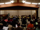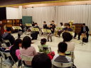 直前の練習で、なんかバラバラになってしまった感じだったので心配していましたが、本番の演奏はなかなかよかったのではないでしょうか。会場のみなさんが静かに聞いてくださっていたので、気持ちよく演奏できたような気がします。「見上げてごらん・・」は、「間奏にギターは入るんだっけ?休むんだっけ?」とわからなくなって、(それもそういちさんの曲紹介が終わった頃になって訊いたもんで)、パニックになってしまい、かよさんの出だしをじゃましてしまいました。かよさんが演奏をやめずに進んでくれたのでよかったですが、失礼いたしました。それから、のりえサン、のりこサン、かよサンに続いての順番での楽器紹介は結構プレッシャー