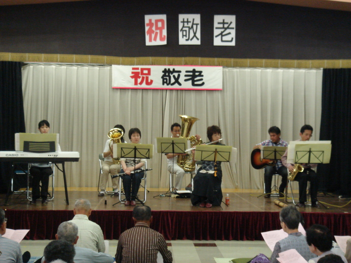 笠間地区敬老会、程良い緊張感で楽しく演奏できました。 選曲・時間とも良かったと思います。そういちさんのMCのおかげで会場も和んで、いい雰囲気だったと