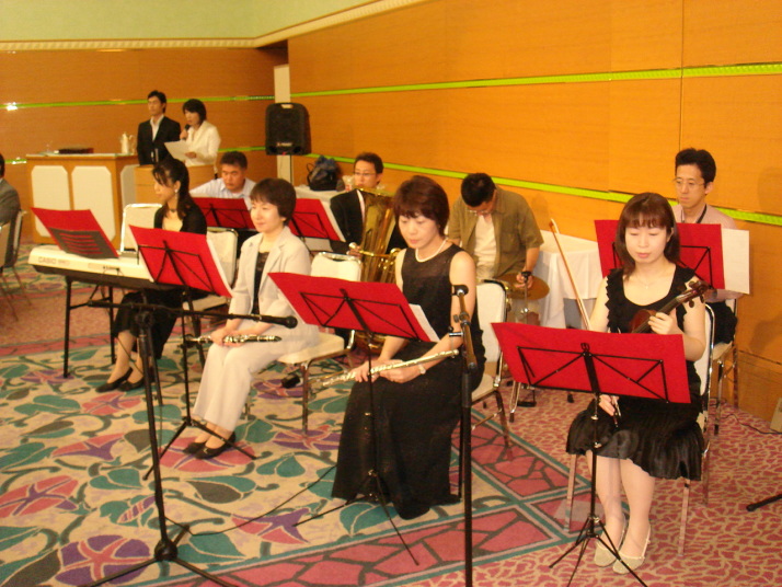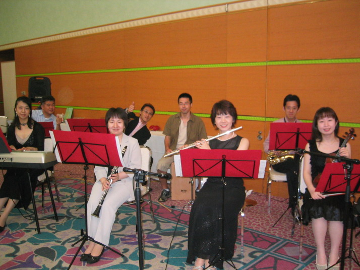 ■編成 フルート、ヴァイオリン、クラリネット、キーボード、ドラム、チューバ、サックス、ギター、リズム ■演奏曲 結婚行進曲(ワーナー)〜亜麻色の髪の乙女、黒いオルフェ (のりこ)先日の披露宴、お疲れさまでした。 新郎・新婦入場のときにはパニクりましたが、会場のみなさんが 温かい目でみて下さり?とりあえず、終わってホッとしています。 一連のイベントも一段落ですね。