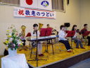 | ●ともこ | 柏野公民館の敬老会、お疲れ様でした。大きな手拍子と歌声がうれしい会でした!「水戸黄門」のビブラスラップはプレッシャーでしたが、とんでもない時に鳴らしたり、かすった音になったりしなくて ホッとしています。改めて思ったんですが、やっぱり「ふるさと」はいい曲!口ずさめる曲は和めてあったかい気持ちになりますね。なんといっても今回の反省は「川の流れのように」です。綺麗な曲なのに、音を多々はずしました。すみません。練習します。 |