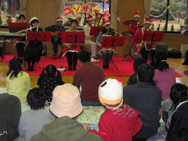 | 市立鶴来南児童館のクリスマス会です。こちらも2年連続のクリスマスの演奏です。 |