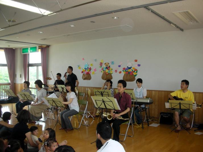 山島保育所では、自分なりにいい感じで音が出せたし、ほとんど失敗もなく 楽しく演奏できました。会場の雰囲気も良かったですね。かずおさんのMCでさらに盛り上がったと思います。