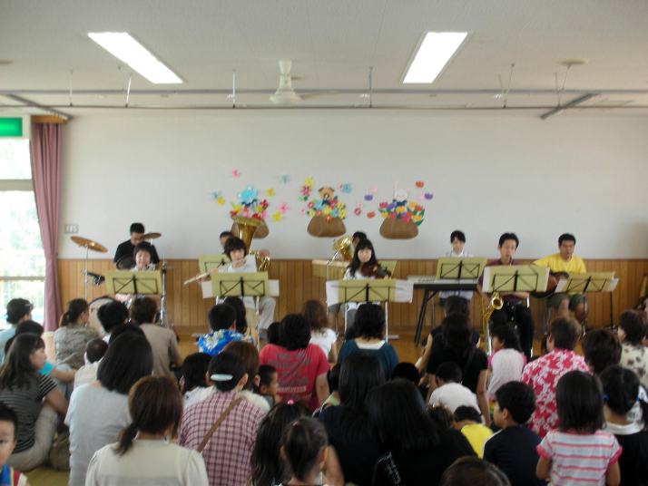 山島保育所、ふるさと館とお疲れ様でした。 今回はなかなか練習に参加できず、ご迷惑をおかけしました!今回は保育所、ふるさと館と続けての演奏だったので、演奏曲がかなりたくさんあってちょっぴり大変でしたね。保育所はなんといっても子どもたちの熱気に圧倒されました。。。歌もとても元気よく歌ってくれ、こちらも力が入りました。いつもですが、子どもたちの前で演奏するとパワーをもらえますね。
