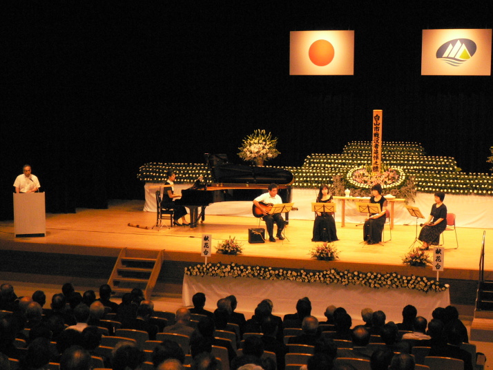 慰霊式の演奏おつかれさまでした。 なんとか無事終わることができました。 始まる直前はとても緊張しました。背中に汗がツーって流れてました。「浜辺の歌」は、りかサンの提案でアレンジが変わり、ひと味違ったいい感じに仕上がりましたね。伴奏はピアノだともっといい感じになったかも