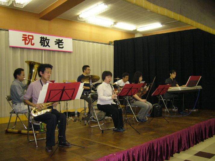 クラリネット、チューバ、バイオリン、キーボード、サックス、ドラム、ギター(8名) |