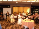 ご結婚おめでとうございます。オケメンバーの演奏を間近で聴けるというのはなかなかなく、貴重な機会にもなりました。バイオリンの音色を同じステージ上で横から聴くのと、客席側で聴くのはやはり違うものですね。いつもに増して甘い音色に聞こえたのは、ボクだけでしょうか? これからの活躍にも期待ですね。そしてビンゴゲームでは、お二人の幸せをちゃっかりわけていただきました。体脂肪計付体重計をいただき、これを機に、お腹周りのダイエットに励もうかな?とても幸せな気分にひたることができたひとときでした。 ありがとうございました |