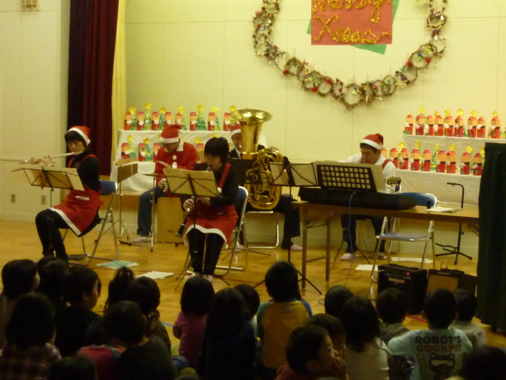 | ■演奏曲 | クリスマスメドレー(きよしこの夜、赤鼻のトナカイ)、さんぽ〜となりのトトロ、踊るポンポコリン、大きな古時計、ディズニーメドレー、いつも何度でも、幸せなら手をたたこう、ジングルベル、サンタが街にやってくる、ありがとう、にんげんっていいな |