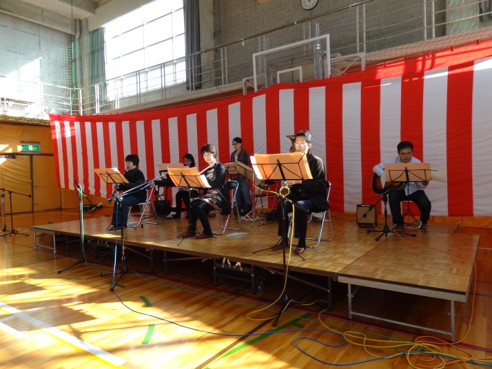 一木地区の文化祭です。太鼓の演奏や、ヒップホップダンスなどいろいろな催しの最後に演奏しました。
