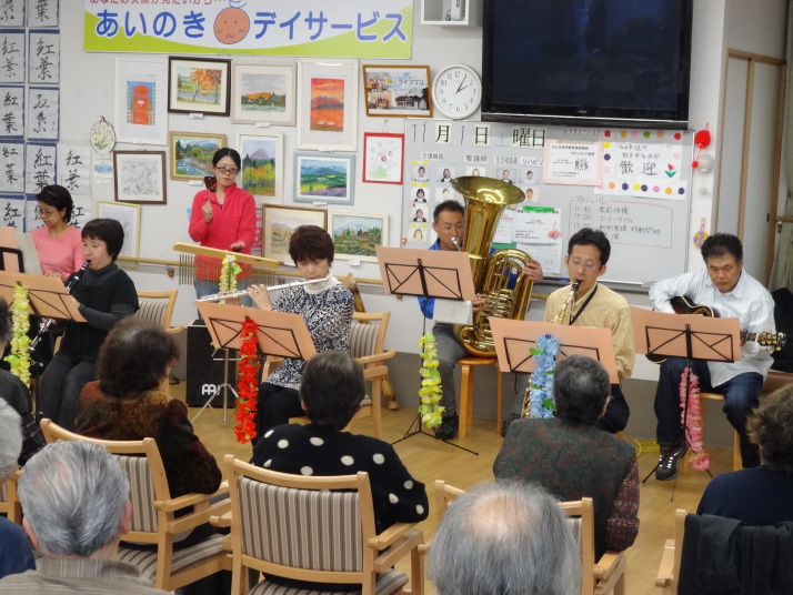 | 久しぶりのデイサービスでの演奏です。初めてこのホームページからオファーをもらいました。アンコールを2回もいただきました。 |
