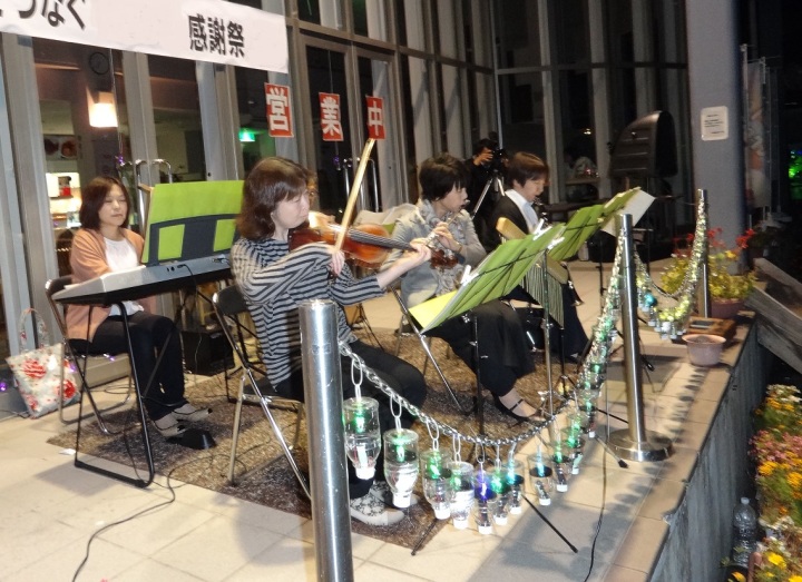 白山一里野温泉で、白山開山1300年記念のLEDペットボタルによるイルミネーションイベントの最終日、クロージングイベントでの演奏です。イルミネーションを見ながら演奏をきいていただきました。