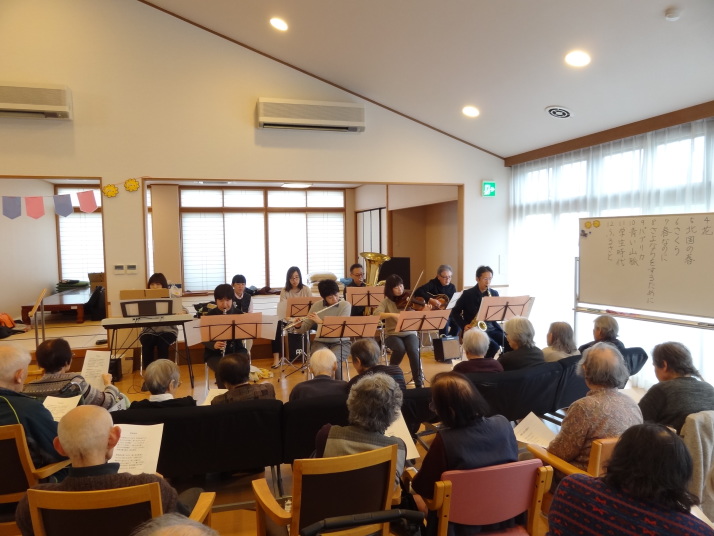 今回は春の曲をたくさん演奏して、とても喜んでいただきました。演奏を聴きながら涙ぐむ方もいらっしゃいました。